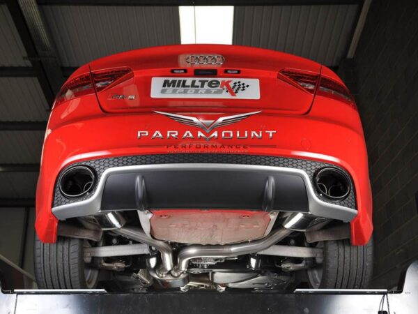 The Milltek Audi RS5 exhaust system exhaust and mufflers are the very finest after-market Audi RS5 exhaust systems available. Milltek Audi RS5 exhausts systems are manufactured from high grade stainless steel Paramount offer an unrivalled range of Milltek exhausts systems, including the Milltek Audi RS5 exhaust, and Milltek Audi R8 catalytic converters too.
